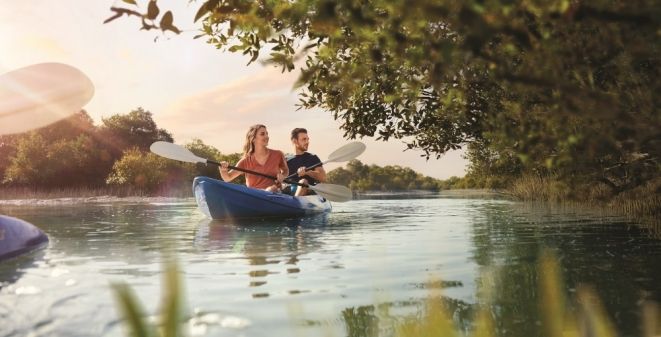 "ياس لينكس أبوظبي" الذي يتماشى مع لعبة الجولف التقليدية، "مانجروف أبوظبي"ويُعدّ تجربة سياحية جاذبة للهواة والمحترفين ،شاطئ "ياس" من خلال استئجار شاليه خاص بإطلالة مميزة، الى جانب مجموعة متنوعة من المطاعم في "مرسى ياس".