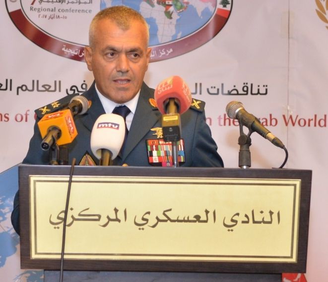 عُقِد لقاء متّصل بالمؤتمر الإقليمي السابع لمركز البحوث والدراسات الاستراتيجية للجيش في النادي العسكري المركزي – بيروت، وتمّ خلاله توزيع أفكار المؤتمر التي جُمِعت في كتاب حمل اسم المؤتمر"تناقضات الصراع والتحوّل في العالم العربي" وتناول أبرز المعضلات والمشكلات التي تعانيها المنطقة عبر نخبة من باحثين، أكاديميين، سياسيين، ديبلوماسيين، عسكريين، خبراء، اقتصاديين وإعلاميين. ألقى عضو المجلس العسكري اللواء الركن جورج شريم ممثّلاً قائد الجيش، كلمة جاء فيها: "على وقع الانتصار الحاسم الذي حقّقه الجيش ضدّ الإرهاب في عملية فجر الجرود، نلتقي في حفل توزيع كتاب المؤتمر الإقليمي. إن رسالة لبنان في هذا الشرق كملتقى للثقافات والحضارات دفعت بالجيش، حامي هذه الرسالة، إلى تنظيم مؤتمرات إقليمية سنوية بإشراف مركز البحوث والدراسات الاستراتيجية، وذلك شعوراً بالمسؤولية التي حتّمها اندلاع الأحداث المأساوية في أكثر من بلد عربي. من هذا المنبر نجدّد التأكيد أن لا موطئ قدم للإرهاب في لبنان بعد اليوم".