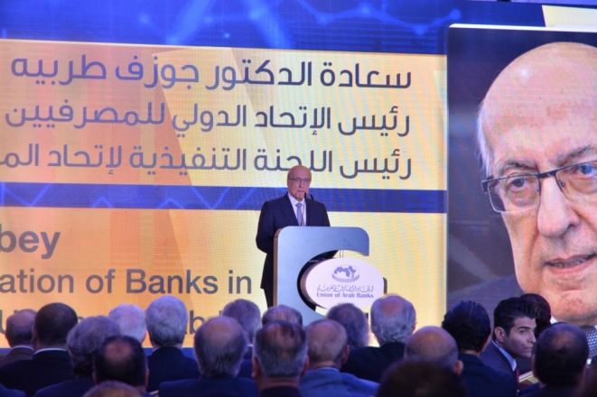 من جهته، أشار رئيس جمعية مصارف لبنان ورئيس الإتحاد الدولي للمصرفيين العرب الدكتور جوزف طربيه: "إن بلداننا العربية تواجه أخطاراً كيانية في الاقتصاد، إذ تعاني من تشوهات مزمنة نتجت عن غياب التخطيط الصحيح على مختلف الصُعد الاقتصادية والمالية، وأدى هذا الغياب إلى أن معظم الاقتصادات العربية أصبحت تفتقر إلى التنويع الاقتصادي، ويعتمد بعضها بشكل كبير على قطاع واحد سواء النفظ أو الغاز أو الزراعة أو السياحة، ما أدى إلى تأثر الاقتصادات العربية بالدورات الاقتصادية العالمية والصدمات الاقتصادية والمالية العالمية، وتراجع إيراداتها نتيجة هذين العاملين. وإستتبع هذا الأمر ضعف الإيرادات الحكومية بشكل عام، وبالتالي عجز في الموازنات واضطرار بعض الدول العربية إلى الاستدانة. وتُظهر مؤشرات المديونية إلى أن بعض دولنا العربية قد احتلّ أولى المراتب في لائحة الدول الأكثر مديونية في العالم، حيث تشير دراسة لصندوق النقد العربي إلى أن 11 بلداً عربياً مثقلاًبديون فاقت نسبة 50% من إجمالي الناتج المحلي لدى هذه الدول عام 2017، في مقدمتها لبنان الذي بلغ الدين العام فيه ما يوازي 150% من الناتج المحلي، وبلغت نسبة خدمة الدين في بعض الدول العربية 40% من نفقات الميزانية. إن أساس مشكلة لبنان المالية تكمن في ارتفاع الإنفاق الحكومي بصورة غير مسبوقة و مسؤولة، وإن ارتفاع الدين العام، ما هو إلا نتيجة لهذا الإنفاق".