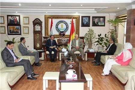 استقبل وزير الزراعة والموارد المائية في حكومة إقليم كوردستان "البروفيسور" سيروان بابان في ديوان الوزارة بأربيل القنصل الإيطالي في الإقليم "كارميليو فيكارا"،وخلال اللقاء الذي حضره المدير العام للتخطيط والمتابعة في الوزارة، جرى بحث عدد من المحاور والمواضيع ذات الإهتمام المشترك، ومنها تقييم حكومة إقليم كوردستان للدور الإيطالي في مجال العلاقات في شتى المجالات وخاصة العلاقات الدبلوماسية والإقتصادية. خلال اللقاء أكد وزير الزراعة والموارد المائية على عمق العلاقات الثنائية بين الجانبين وأنّ هذه العلاقات في مستوى رفيع وشهدت تقدماً ملحوظاً. كما أكد على ضرورة الإستفادة من تجارب وخبرات الحكومة الإيطالية في المجال العلمي والفني المتقدم في قطاع الزراعة ومصادر المياه، ثم تطرق بعدها إلى زيارته الأخيرة الى بريطانيا، وأشار الى التنسيق مع الشركات والمستثمرين البريطانيين، داعياً الشركات الإيطالية أن تحذو حذو الشركات البريطانية في تنفيذ المشاريع الزراعية بموجب أولويات الخطة الاستراتيجية للوزارة. من جانب آخر أشار إلى المؤتمرات و"الكونفرانسات" التي عقدتها الوزارة في مديريات الزراعة في محافظات الإقليم بهدف تحديد الإحتياجات ومستلزمات المرحلة المقبلة للوزارة في إطار وضع خطة استراتيجية خلال 2014 ـ 2018 والتي من المقرر البدء بتنفيذها بعد المؤتمر العام للوزارة وشدّد وزير الزراعة والموارد المائية على ضرورة المشاركة الإيطالية من خلال الخبراء والمختصين. من جهته أبدى القنصل الإيطالي في الإقليم إستعداد بلاده للتعاون والتنسيق مع حكومة إقليم كوردستان عن طريق وزارة الزراعة الإيطالية والشركات الإيطالية المختصة بهذا القطاع ومشاركتها في تنفيذ مشاريع الوزارة بموجب الأولويات وإحتياجات المرحلة الآنية والمستقبلية للوزارة وخاصة في مجال إنشاء معمل لمنتوجات الألبان في إقليم كوردستان والذي من شأنه سدّ إحتياجات الإقليم وباقي أنحاء العراق.