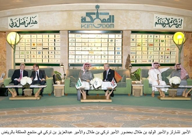 إستقبل صاحب السموّ الملكي الأمير الوليد بن طلال بن عبد العزيز آل سعود، رئيس مجلس إدارة شركة المملكة القابضة، صاحب السموّ الملكي الأمير "تشارلز"، ولي عهد المملكة المتحدة في منتجع المملكة بالرياض.