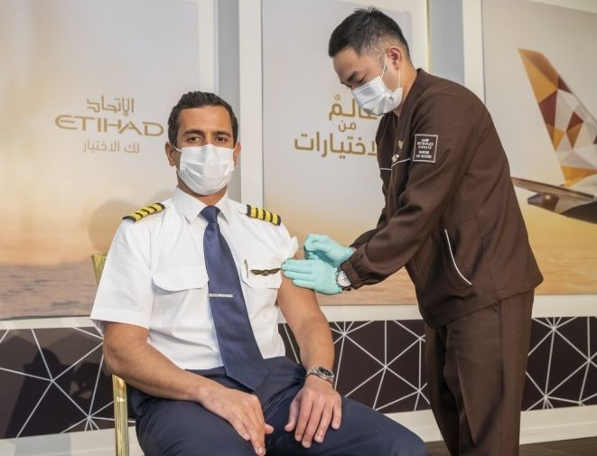الإتحاد للطيران أول شركة في العالم تعطي اللقاح لكافة أعضاء طاقمها الجوي