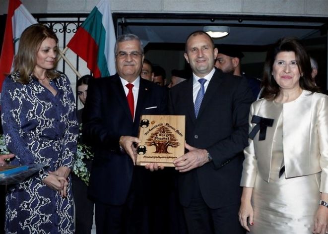 زار الرئيس البلغاري رومن راديف وعقيلته والوفد الرسمي والإعلامي المرافق مقرّ بلدية الحازمية، وكان في استقبالهم النائبان آلان عون وبيار بو عاصي، محافظ جبل لبنان القاضي محمد مكاوي، رئيس وأعضاء المجلس البلدي، وحشد كبير من خريجي الجامعات البلغارية وأبناء الجالية في لبنان ومخاتير.إفتتح اللقاء رئيس البلدية جان الأسمر قائلاً: "إستضافتكم في هذا القصر البلدي ليست بالحدث العادي، بل تتعداه لتستحق الوصف التاريخي لأنها تزيدنا فخراً واعتزازاً، فقد دشّن هذا المقرّ فخامة رئيس الجمهورية اللبنانية ميشال سليمان في العام 2013، وها أنتم اليوم الرئيس الأوروبي الأول الذي نتشرّف باستقباله في مدينتنا الحازمية، بلدةً وبلدية ومخاتير وجمعيات، آملين أن تحظى مدينتنا يوماً بزيارة فخامة رئيس الجمهورية العماد ميشال عون".وأضاف الأسمر: "أردنا للحازمية دوراً ريادياً في الثقافة والعلم والفن والاقتصاد فاخترنا لها شعاراً خطوة نحو الغد، وها هي اليوم قبلة أنظار كبار المستثمرين في لبنان والشرق الأوسط ، ومركز لأهم المشاريع العمرانية والتجارية، ومنزل لكبار رجال السياسة والعلم والاقتصاد والفن والإعلام، وحاضنة لعدد كبير من السفارات والمؤسسات العالمية وعلى رأسها السفارة البلغارية التي نعتزّ بوجودها في مدينتنا". وتوجّه الأسمر إلى السفير البلغاري بالقول: "نفخر دوماً بالتعاون مع سعادتكم ومع فريق عملكم المميز بجهده ومثابرته، الذي ينقل إلينا أجمل صورة عن بلدكم العزيز ويسعى بكل ديناميكية لاستقطاب المستثمرين والسائحين لبلدكم الحبيب. بين لبنان وبلغاريا الكثير من التشابه، فكلاهما متأثران بالثقافتين الشرقية والغربية، ويضعان العائلة في المرتبة الأولى، ويحافظان على الدين والتقاليد والفولكلور الذي لا يزال حيّاً ويُنقل من جيل إلى جيل. ولعلّ أكثر ما نتشارك به هو الأمثال والأقوال المأثورة الواردة إلينا من الثقافة البلغارية، فالحياة سلّم، ونحن في الحازمية عاهدنا أنفسنا وشعبنا أن نبقى دوماً في طريق الصعود نحو القمة وما بعدها". واختتم كلمته قائلاً: "من الحازمية قلب لبنان النابض محبة وتطوّراً، نشكر فخامتكم قبول دعوتنا للقاء أركان الجالية البلغارية في مدينتنا، ونحمّلكم يا فخامة الرئيس إلى بلغاريا دولة وشعباً، كل المحبة والتقدير وهدية عبارة عن خشبة من أرز الرب رمز لبنان وقلب علمه، فيها "كتاب النبي" لجبران خليل جبران". بدوره، أفاد فخامة الرئيس البلغاريرومن راديف قائلاً: "أتوجّه بالشكر إلى رئيس بلدية الحازمية جان الأسمر على إتاحة هذه الفرصة لنستفيد ونجتمع في هذا اللقاء المؤثر. لقد كان اليوم حافلاً ومثمراً بالنسبة لي وللوفد المرافق، إذ أجرينا محادثات مثمرة مع رئيس الجمهورية العماد ميشال عون ورئيس مجلس الوزراء سعد الحريري ورئيس مجلس النواب نبيه بري. وخلال الإجتماع مع الرئيس عون تطرّقنا إلى أهم القضايا التي تخص التعاون بين البلدين ولا سيما اقتصادياً، وأنا لا أشكّ على الإطلاق في مستقبل وآفاق تجسيد الإمكانيات على أرض الواقع في مجال تطوير وتوسيع التعاون الاقتصادي بين البلدين، إنما هذا التوفيق يتطلب توفير الثقة المتبادلة بين بلدينا. وهنا، أودّ أن أتوجه إلى رابطة اللبنانيين خريجي الجامعات البلغارية بأنكم أنتم من يجسد الضمانات لتوفير هذه الثقة، وأنتم الذين تقيمون وتبنون السمعة الجيدة لبلغاريا هنا على أرض لبنان. وأنا على يقين بأن زيارتي وبفضل جهودكم، ستسفر عن المزيد من تعزيز التعاون القائم بيننا، ونأمل أن نرى مزيداً من رجال الأعمال اللبنانيين في بلغاريا والبلغار في لبنان، وأن نتبادل المزيد من برامج الطلاب والفعاليات الثقافية المشتركة. وسأكون مسروراً بأن أرى عدداً أكبر من السيّاح اللبنانيين في بلدنا".