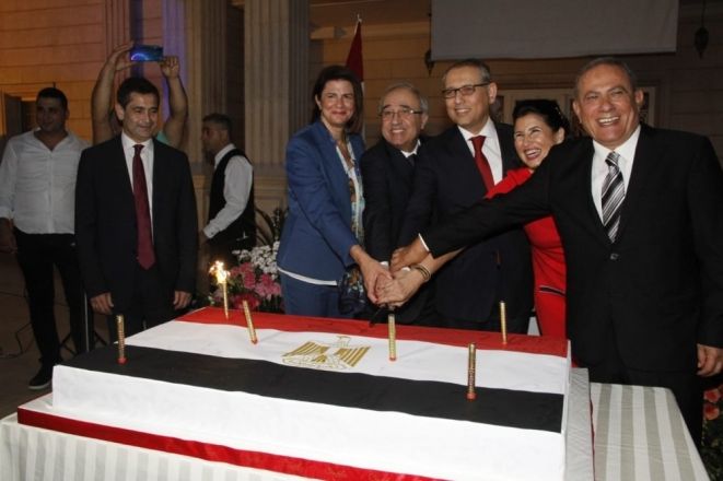 أقام سعادة السفير نزيه النجاري الحفل السنوي لمناسبة العيد الوطني المصري - ذكرى ثورة 23 يوليوفي منزله الخاص في دوحة الحص، بحضور عدد كبير من الوزراء والنواب والسفراء ورجال الأعمال والإعلام. وبهذه المناسبة قال السفير النجاري: "نستحضر معاً ذكرى أيام فارقة في تاريخ مصر والأمة العربية أجمع وبداية حقبة من النضال العربي للتحرّر والاستقلال ألهم الملايين من شعوب العالم وسجّل صفحات خالدة في تاريخنا العربي الحديث، لتحقيق القيم النبيلة التي رفعتها "ثورة 23 يوليو"من إستقلال القرار وإنهاء الاستعمار وتحقيق العدالة الاجتماعية لأبناء الشعوب العربية. احتفالنا هذا العام مميزٌ إذ يأتي في مرحلة تشهد طفرة كبيرة في ارتقاء العلاقات بين البلدين في إطار إهتمام مصر بتوثيق علاقاتها العربية وفق رؤية الرئيس عبد الفتاح السيسي، فالعلاقات اللبنانية - المصرية تتقدّم بخطى ثابتة حيث شهد العامان المنصرمان حركة مكثّفة للتواصل بين مسؤولي البلدين تُوّجت بعقد أعمال اللجنة العليا المشتركة مرتين بعد طول غياب، بالتزامن مع استقرار حجم التبادل التجاري بين البلدين بحوالى 700 مليون دولار أميركي وتنامي حجم الاستثمارات اللبنانية في مصر الى مليارين ونصف المليار دولار أميركي. لقد مثّلت أعمال اللجنة المشتركة الاخيرة في بيروت انطلاقة مهمّة للتعاون في مجالات عدّة واعدة يأتي في مقدمتها قطاع الطاقة الذي يشهد اتصالات مكثفة في الفترة الحالية بين الوزراء المعنيين بالغاز والكهرباء في البلدين، وهو القطاع الذي تملك فيه مصر امكانات كبيرة وقد نجحت خلال أعوام قليلة في مضاعفة إنتاجها من الكهرباء. إن تفعيل نتائج اللجنة المشتركة لتحقيق تكامل بين إقتصادي البلدين يستفيد منه المواطن في مصر ولبنان ويتطلّب وجود الارادة اللازمة، ونحن من جانبنا جاهزون لتقديم كل ما يحتاجه لبنان سواء في مجال الطاقة والكهرباء أو غيره من المجالات".في الختام أشار السفير نزيه النجاري الى افتتاح مكتبة الهيئة العامة المصرية للكتاب في بيروت تجسيداً للعطاء الثقافي الطويل للقاهرة وبيروت، وأكّد حرص مصر على دعم لبنان ضمن ثوابت الحفاظ على وفاقه الوطني تحت مظلّة "إتفاق الطائف" الذي يمثّل الضمانة الحقيقية لاستقرار البلد وتوازنه وإنمائه في خضمّ ظروف إقليمية ودولية بالغة الصعوبة. تخلّل الحفل عرض لفيلم وثائقي عن التطورات السياسية والاقتصادية الأخيرة في مصر، واستعراض فني لفرقة الفنون الشعبية المصرية بما لاقى إعجاباً وتفاعلاً ملحوظاً من الحضور.