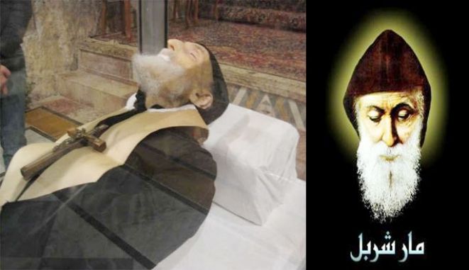 وفي العام 1950، كشفت على الجثمان لجنتان طبيّة وكنسية، وأكّدتا أن جثمانه سليم صحيح كما كان قبلاً، مغموراً بدمه الراشح منه. وانتشر خبر هذه الظاهرة، فتهافت الناس ألوفاً إلى الدير، فتكاثرت حول الضريح حوادث الشفاء من أمراض متنوعة ومستعصية، فضجّ لبنان والعالم بأخبار هذه الحوادث الخارقة، وتماوج الزوار في أروقة الدير كبحر زاخر، مصلين، تائبين وخاشعين. في عام 1965، في ختام المجمّع الفاتيكاني الثاني، رفعه قداسة البابا بولس السادس إلى شرف الأكرام على المذابح وأحصاه في مصاف الطوباويين، كما شُيّدت على اسمه كنيسة في عنايا بالقرب من ضريحه، تُعدّ اليوم من أجمل الكنائس في الشرق. وأعلن قداسة البابا بولس السادس نفسه الطوباوي شربل قديساً في التاسع من شهر تشرين الأول 1977. وحتى اليوم نسمع ونلمس العجائب التي يقوم بها القديس شربل لكل المؤمنين والمؤمنات من جميع الطوائف الدينية.