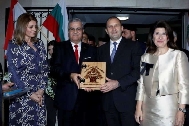 زار الرئيس البلغاري رومين راديف وعقيلته والوفد الرسمي والإعلامي المرافق، القصر البلدي في الحازمية حيث استقبله المجلس البلدي، رئيساً وأعضاء، والنواب آلان عون وبيار بو عاصي ود. فريد بستاني، إضافة إلى محافظ جبل لبنان القاضي محمد المكاوي، وحشد من موظفي البلدية وخرّيجي الجامعات البلغارية وأبناء الجالية في لبنان ومخاتير، وقد زُيّن مبنى البلدية بالأعلام اللبنانية والبلغارية، في ظل مواكبة أمنية من الحرس الجمهوري وجهازي الشرطة والحراس في البلدية. استعرض الرئيسان ثلة من الشرطة والحرس على مدخل البلدية، على وقع النشيدين اللبناني والبلغاري، وتوجّها مع عقيلتيهما إلى داخل القصر البلدي على نغمات نشيد الحازمية. والسبب الرئيسي للزيارة هو زيارة البلدية التي يقع فيها مقرّ سفارة بلاده، إضافة إلى لقاء الجالية البلغارية وخرّيجي جامعات بلغاريا في لبنان ووضع أسُس تعاون ثقافي واجتماعي مع البلدية.