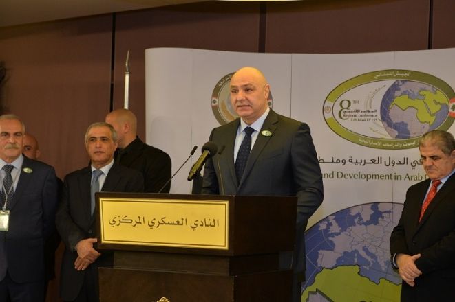 أقِيم في النادي العسكري المركزي - المنارة، حفل استقبال وافتتاح المؤتمر الإقليمي الثامن بعنوان: "دعم الاستقرار والتنمية في الدول العربية ومنطقة الشرق الأوسط"، الذي نظّمه مركز البحوث والدراسات الاستراتيجية في الجيش اللبناني برعاية رئيس الجمهورية العماد ميشال عون، وبمشاركة شخصيات وطنية، دبلوماسية، عسكرية، باحثين وأكاديميين من لبنان وبلدان عربية، إقليمية ودولية ومن منظمات مختلفة. حضر الاحتفال ممثل رئيس الجمهورية وزير الدولة لشؤون رئاسة الجمهورية بيار رفول، ممثل رئيس مجلس النواب قاسم هاشم، ممثل رئيس مجلس الوزراء وزير الاتصالات جمال الجرّاح، قائد الجيش العماد جوزف عون الذي علّق قائلاً: "شاءت الأقدار أن تكون هذه المنطقة عقدة مواصلات جغرافية، وساحة تتصادم فيها الإديولوجيات والتناقضات الفكرية والمصالح الدولية الى حدّ بات يبدو معه عنوان "الاستقرار والتنمية" مطلباً صعب المنال. لقد عاهدت المؤسسة العسكرية أبناء وطنها على صون الاستقرار، وهو إنجاز ثمين من دمائهم الزكية وأرواحهم الطاهرة. لذا فإننا كلبنانيين، وتحديداً كعسكريين، مدركون لموقع الاستقرار في بنيان الوطن: إنّه الركن الثابت الذي تشيّد عليه المجتمعات، فلنضع نصب أعيننا هذا الهدف النبيل ولنتعاون في اجتراح الحلول والوسائل الكفيلة بتحقيقها".