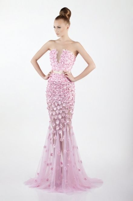 استوحيتها من فن العمارة في اسبانيا، الفساتين تحتوي على الأشكال الهندسية المنوعة. هي مجموعة صيف 2014 وستطلق بتاريخ 11/3/2014 ضمن حفل سيقام في فندق فينيسيا – بيروت. ستضم حوالي 17 أو 20 فستاناً، فأنا أعمل على النوعية لا على الكمية طبعاً. الألوان تتراوح بين الذهبي، البرونزي، الأحمر، الزهر، الكحلي، الأزرق، الفضي والأصفر. بالنسبة الى القَصّة فهي موحّدة demi sirène والأقمشة أحضرتها جميعها من الخارج ومنوعة بين "الدانتيل" والمطرّزة وفيها القليل من "الشوارفسكي"، بالإضافة الى فستاني زفاف.