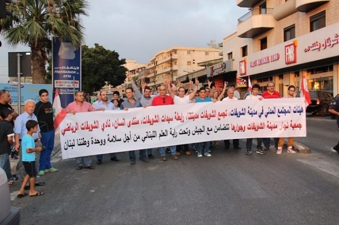 نظمت وكالة داخلية الشويفات – خلدة في الحزب التقدمي الإشتراكي ودائرة الشويفات في الحزب الديمقراطي اللبناني، وقفة تضامنية مع الجيش اللبناني في المدينة، بمشاركة كاهن الرعية المارونية الأب شربل ديب، ومشايخ من المدينة، ورئيس بلدية مدينة الشويفات ملحم السوقي، ورئيس بلدية ديرقوبل نزار رسامني، وأعضاء مجالس بلدية، ووكيل داخلية الشويفات – خلدة في الحزب التقدمي جلال الجردي وأعضاء الوكالة، ورئيس دائرة الشويفات في الحزب الديمقراطي منير الريشاني وأعضاء هيئة الدائرة، والحزب الشيوعي اللبناني، ورابطة سيدات الشويفات، ونادي الشويفات الرياضي، ومنتدى انسان، وتجمع الشويفات مدينتنا، وجمعية الشويفات للعيش المشترك، وجمعية تجار الشويفات والجوار، وجمعية سواعد – البيئة والتنمية في دوحة الشويفات، بالاضافة الى حشد من عشائر العرب في خلدة، والمحازبين والمناصرين.